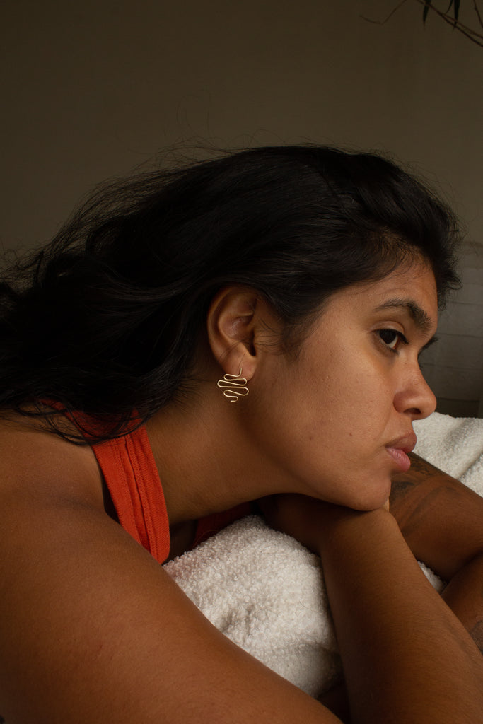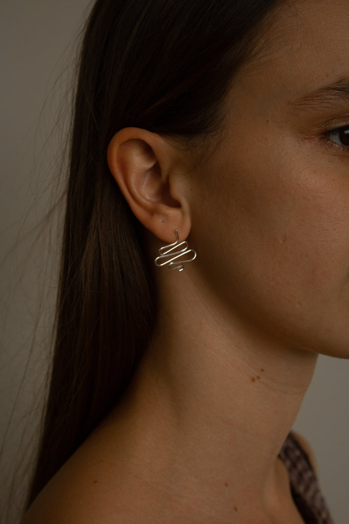 The Quiver earrings are handcrafted from recycled 1mm wire. Each piece are original in form and versatile in wear; the fine, tapering shape of the metal provides texture and movement that can transform any look. Sold as a pair.