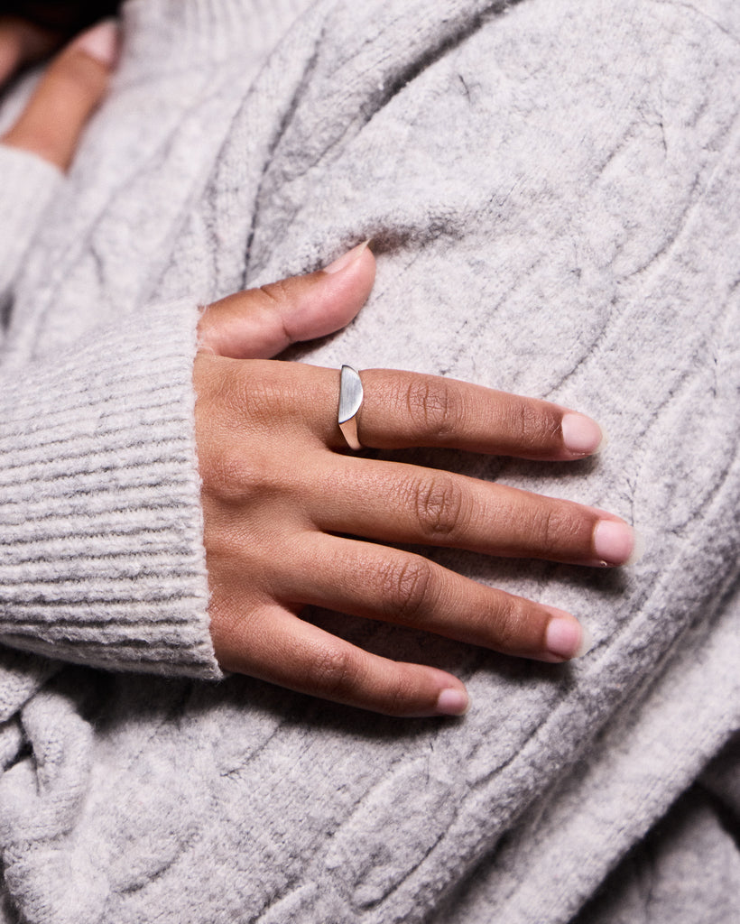 A modernised signet, designed to be timeless. The smoothed arch with sharp edges creates a contemporary feel with a bold impact. An inimitable ‘EB’ statement piece.